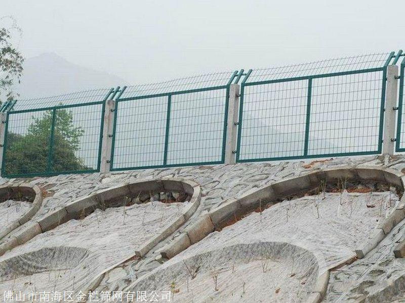 产品详情:广东高铁防护网铁丝4货1.8米浸塑墨绿色铁路护栏网
