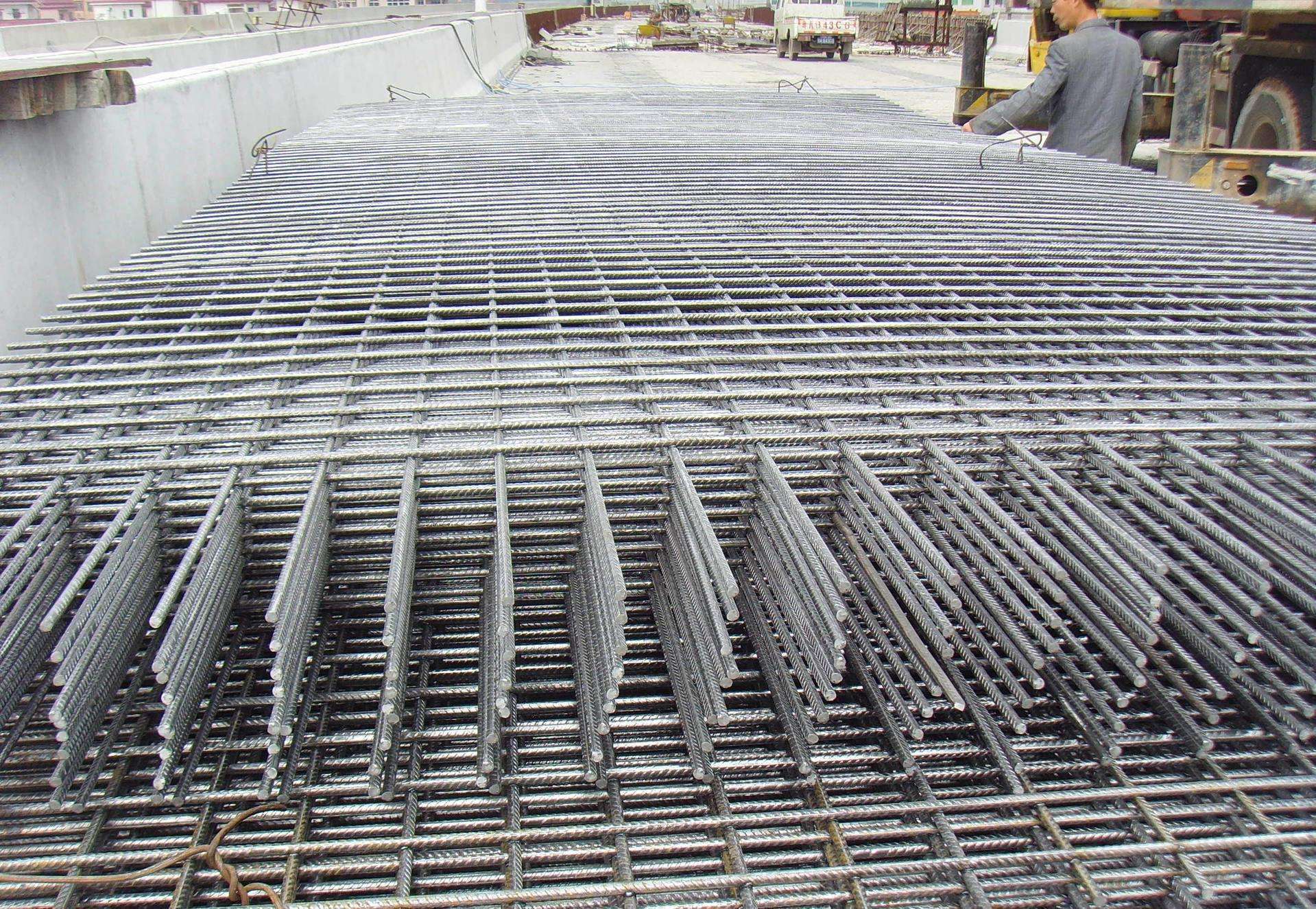 钢筋网片:钢筋网,又称焊接钢网,罗纹钢网。钢网的焊接程序由电脑自动控制。焊接质量好,焊丝直径粗,焊接前后钢的力学性能几乎从未转变。钢筋网可用于煤矿,机场的多层和高层商贸建筑中跑道,高速公路,隧道,桥梁,混凝土管,水利坝基,码头,储藏室和污水处理池以及其他钢筋混凝土构造。钢筋网用于道路,桥梁,飞机场,花园,公共场所,广场,公路,铁路,公路,工厂等